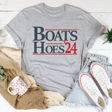 Whether you're hosting a movie night or simply wanting to showcase your love for film-based humor, this tee is your first-class ticket! Hop aboard the "Boats Hoes 24" tee today and sail on a sea of laughs!
